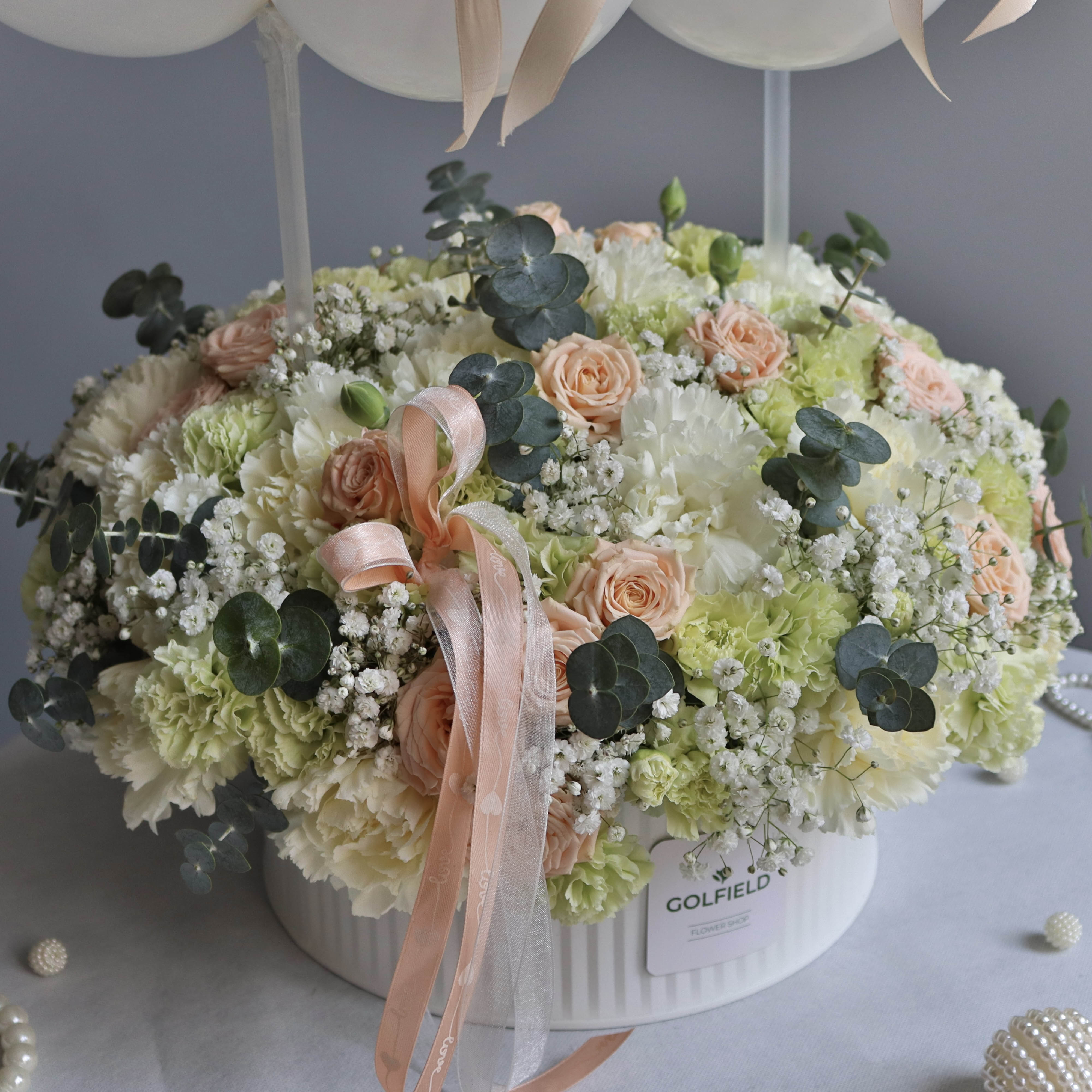 اگر به دنبال یک هدیه خاص و جذاب با تم رنگی سفید و گلبهی هستید، باکس گل حدیث کاری از گلفیلد انتخابی ایدهآل برای شماست. این باکس گل آنلاین با طراحی زیبا و اندازهای به قطر ۴۰ سانتیمتر، شامل ترکیبی منحصر به فرد از گلهای میخک و رز مینیاتوری گلبهی، گل عروس به همراه اکالیپتوس و بادکنک هایی با تم رنگی سفید میباشد که هر مناسبت ویژهای را به لحظهای فراموشنشدنی تبدیل میکند. ارسال گل به ایران با این باکس گل شیک و خاص، هدیهای بهیادماندنی برای عزیزانتان خواهد بود.