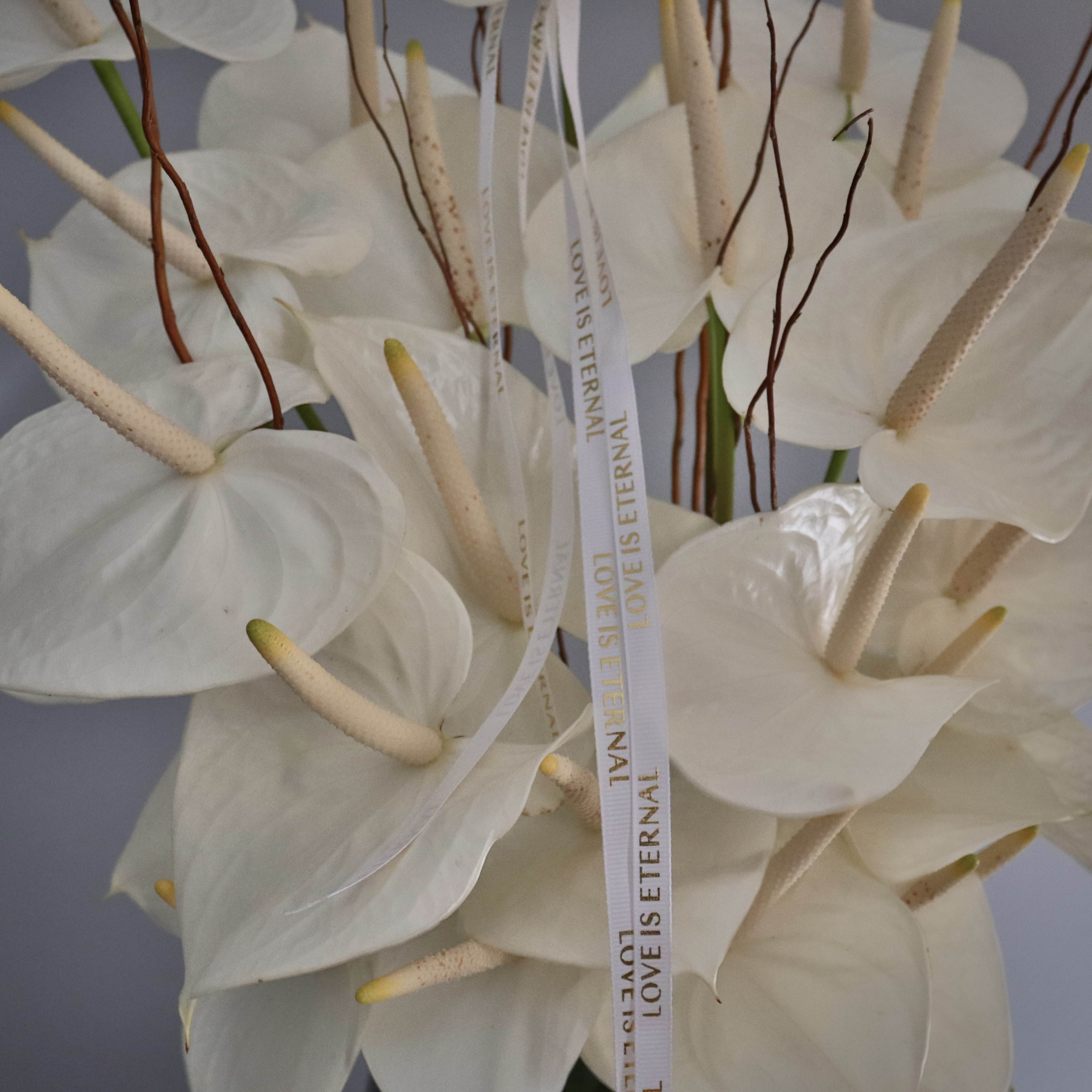 جار شیشهای آنتریوم جزو جذاب ترین محصولات گلفیلد بوده و بهترین انتخاب برای موقعیتهای خاص است. ترکیب گلهای آنتوریوم سفید با فرم خاص و برگهای سبز براق، جلوهای لوکس و آرامشبخش به فضا میبخشد. طراحی این محصول بهگونهای است که برای هدیه دادن در مناسبتهایی مانند تولد، سالگرد یا حتی دکوراسیون منزل و محل کار بسیار مناسب میباشد.